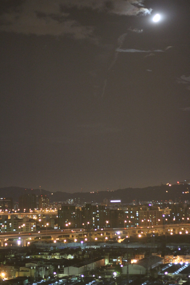 後來無聊時,就在窗口拍了起來,台北的夜晚車子蠻多的,從15樓往外看,還可以看到遠處的夜景與附近的學校。