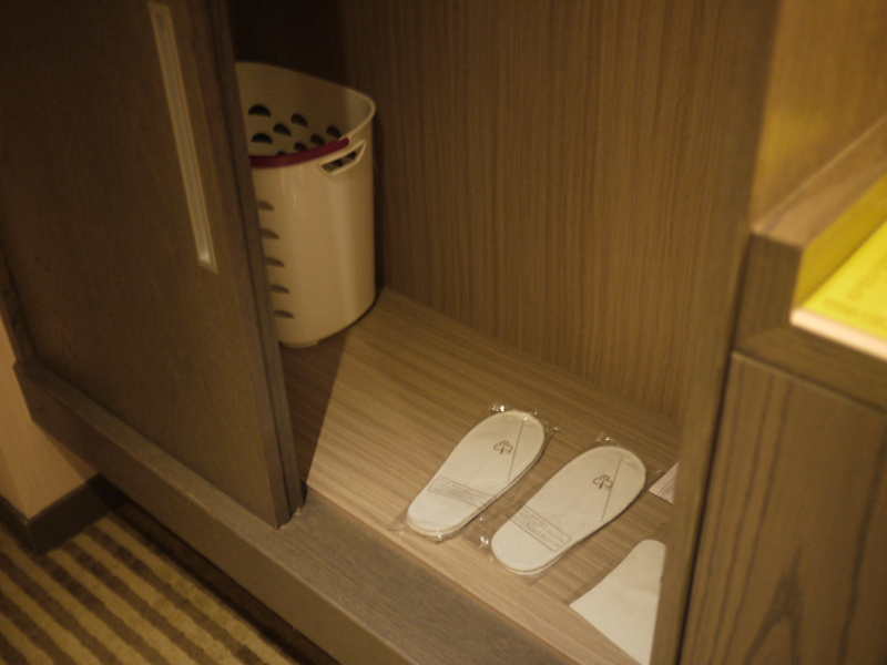 在打開門一進來的左手邊,放置著大衣櫃,裡面提供的拖鞋蠻好穿的,兔兔說穿起來很舒服,衣櫃內還有衣架等民生用品。