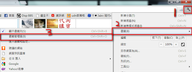 第二步:安裝好後,點擊google chrome的右上方版手,選取書籤→書籤管理員。