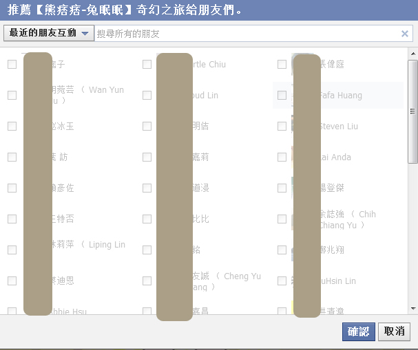 第七步:最近的朋友互動→搜尋所有好友→將捲軸拉到最底→點擊書籤的全選→按確定就完成了。